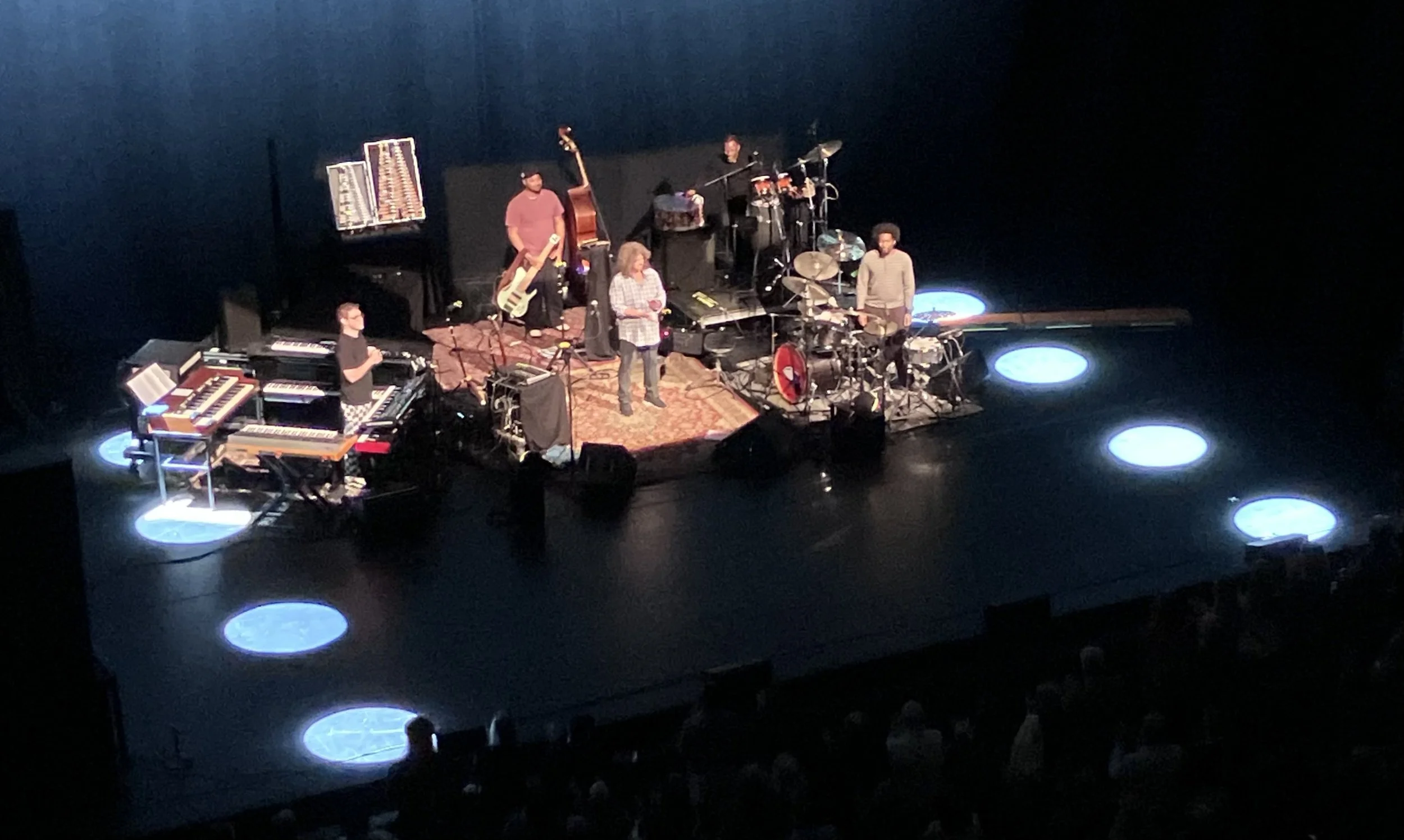 Partly for that reason, I experienced Metheny’s performance as an extension of the extravagant prog-rock and jazz fusion traditions. The five human musicians- Lee’s Summit native Metheny, keyboardist Chris Fishman, bassist Jermaine Paul, percussionist and vocalist Leonard Patton and drummer Joe Dyson- played with explosive vigor. Automatonic vibraphones might be considered a sixth player.